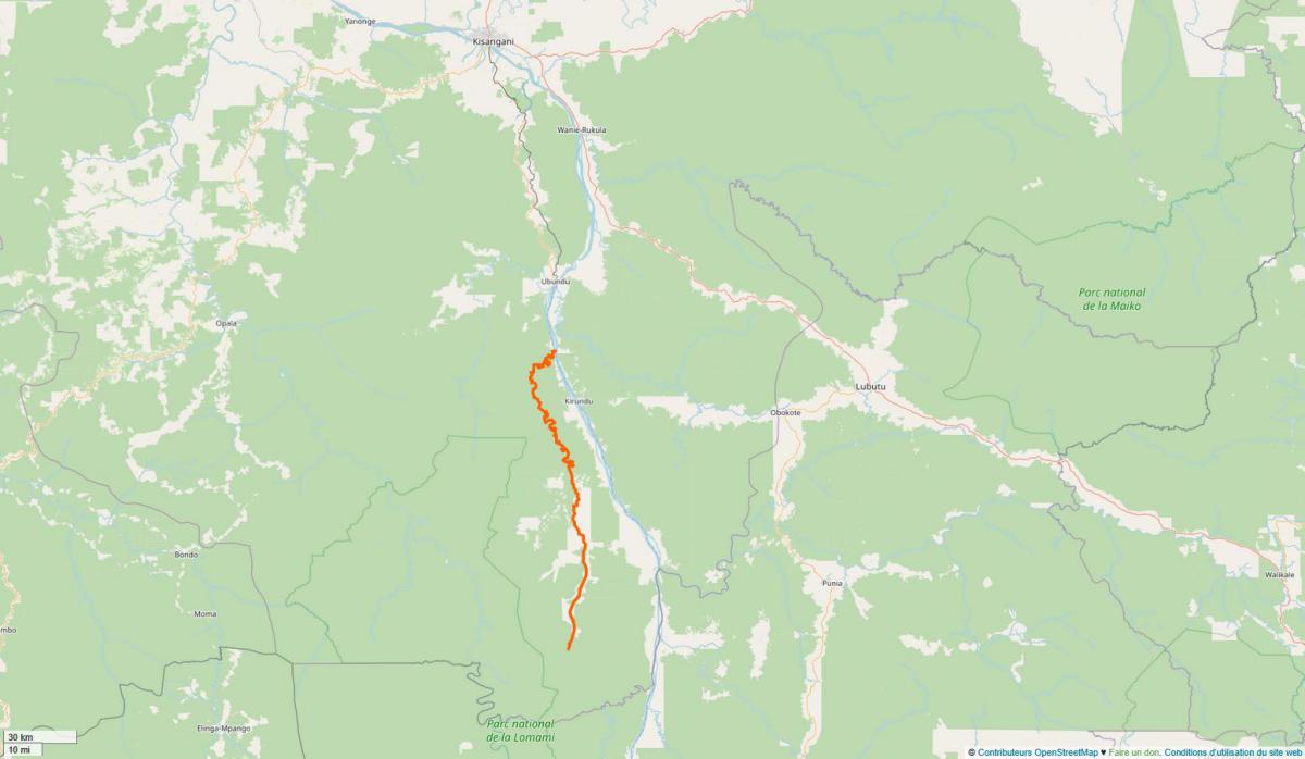 Elle prend sa source dans la réserve de faune de Lomami-Lualaba qui est inclus dans le parc national de la Lomami. Cette source est située dans la province de Tshopo précisement dans le territoire d'Ubundu, à 491 m d'altitude. De là, elle s'écoule en direction nord jusqu'à sa confluence avec le fleuve Congo entre les villages de Batiakope et Baturu, à 420 m d'altitude.