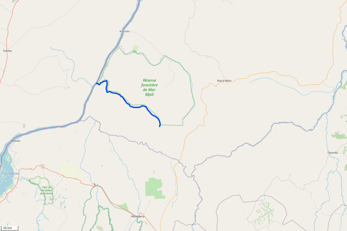 Elle est la rivière éponyme de la réserve forestière de Mai-Mpili dans la province de Mai-Ndombe. Elle prend sa source près de la localité de Mosiamo sur le territoire de Kwamouth et coule dans sa totalité d'est en ouest. Elle marque sur la quasi totalité de son cours, la limite sud de la réserve de Mai-Mpili jusqu'à son embouchure dans le fleuve Congo au niveau de la localité de Masa non loin de l'île des Eléphants.