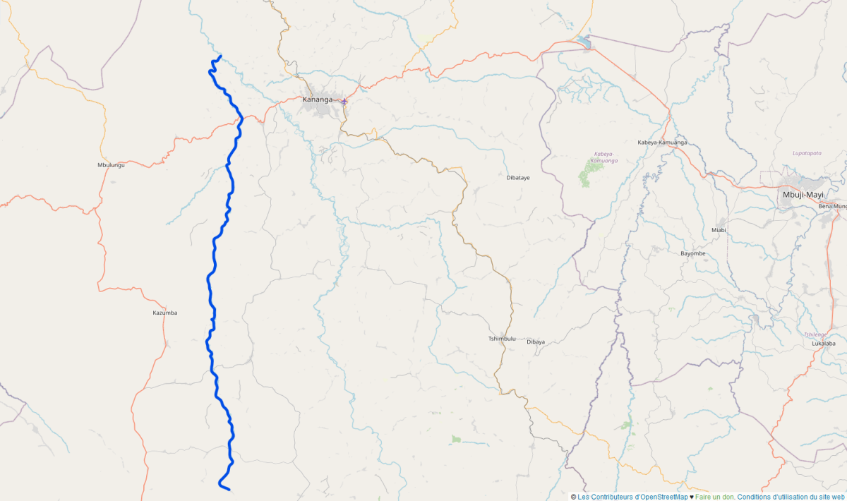 Affluent de la rivière Lulua dans la province du Kasaï-Central, elle prend sa source près de la localité de Mwaila sur le territoire de Kazumba. De là, elle coule en direction nord en longeant la route nationale 39 (RN39) puis franchit la route nationale une (RN1: axe Kananga-Tshikapa) à l'est de la localité de Matamba et reçoit peu après les eaux de la rivière Lutshatsha, son principal affluent. Elle finit par se jeter dans la Lulua au nord-ouest de la ville de Kananga après un parcours long de 170 km.